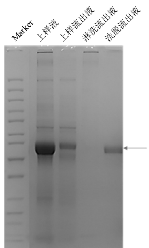 针对组织型纤溶酶源激活剂(tissue plasminogen activator,t-PA),汉腾生物构建了共表达 t‑PA 和 t‑PA 抑制剂的双表达框载体以及一步层析纯化工艺(结果如下,详细内容参考汉腾专利:t-PA纯化方法,CN14426962B)。其中 t‑PA 与 t‑PA 抑制剂形成的非共价复合物结构松散,易于分离。此外,目前 t‑PA 的纯化工艺一般需要 3~4 步才能实现 90%以上的纯度,共表达 t‑PA 抑制剂后结合使用赖氨酸亲和层析,能够实现 t‑PA 的一步层析纯化(图 1)。最终 tPA 的纯化后产率达 361.5 mg/L,是现有技术的 3 倍以上。