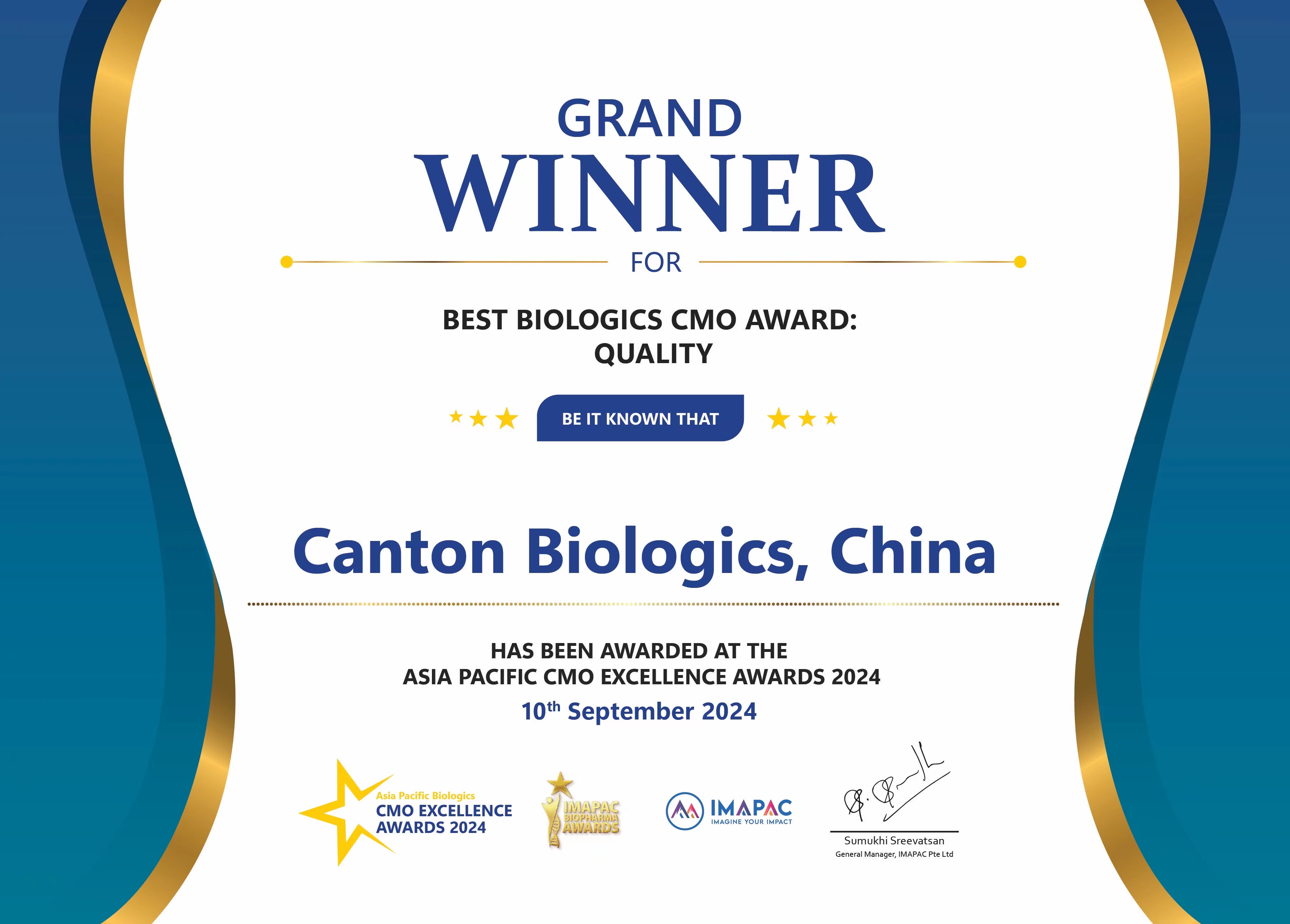 (APBCEA旨在表彰生物药合同生产领域中,为加速生物药研发进程、降低成本和提高质量做出卓越贡献的CMO或CDMO企业,2024年的获奖评选根据来自亚太地区生物制剂、细胞和基因治疗以及疫苗界10,000多名专业人士的行业投票决定。)